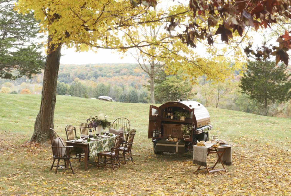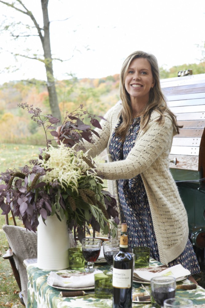 Ashley is not afraid to take her holiday dinner table outside into nature, but always likes to incorporate interior elements, like a chintz tablecloth, to match the formality of a special occasion. Putting in the extra work to use china and glassware outside, “makes guests feel special”— the sentiment of a natural born host.
