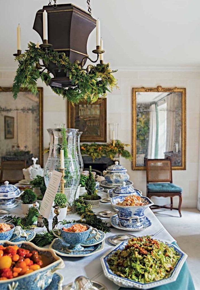 Bunny Williams says, “I love Christmas” and her passion shows in her holiday collection for Ballard Designs. Bunny knows the best way to deck your halls (and tables) is with a touch of sparkle, and much of her collection of ornaments, decor, cachepots, salt and pepper dishes, and napkin sets have a hint of shimmer. For the finishing touches to your table and mantelscapes, choose flowers that are in season and colors that represent the holiday your celebrating, as nostalgia is an important part of getting into the spirit. Bunny likes paperwhite narcissus, cyclamen, magnolia, and pine.